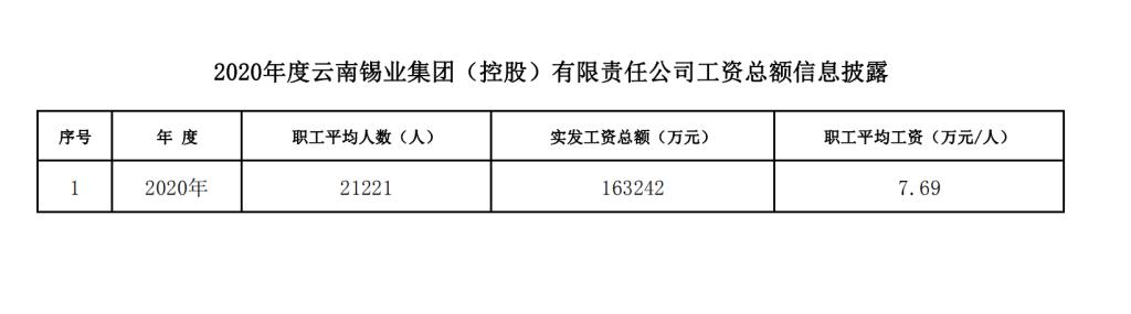 2020年度云南錫業集團(控股)有限責任公司工資總額信息披露