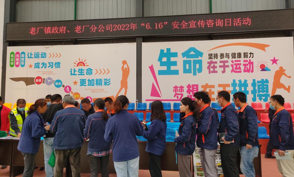 2022年6月是我國第21個(gè)全國安全生產(chǎn)月,6月16日為“安全宣傳咨詢?nèi)铡保麄髦黝}為“遵守安全生產(chǎn)法 當(dāng)好第一責(zé)任人”,云錫各單位結(jié)合實(shí)際,通過放置宣傳展板、發(fā)放宣傳資料、現(xiàn)場咨詢、有獎(jiǎng)測試、手機(jī)APP“隱患排查闖關(guān)游戲”等方式開展職工喜聞樂見的系列活動(dòng),宣傳安全生產(chǎn)方針政策、法律法規(guī)和安全知識(shí),一項(xiàng)項(xiàng)豐富多彩的活動(dòng),讓廣大干部職工安全理念入腦入心。累計(jì)接受職工群眾法律咨詢300余次,發(fā)放法治宣傳手提袋1000余個(gè)、宣傳資料5000余份,在全司營造“關(guān)愛生命、關(guān)注安全”的濃厚氛圍。