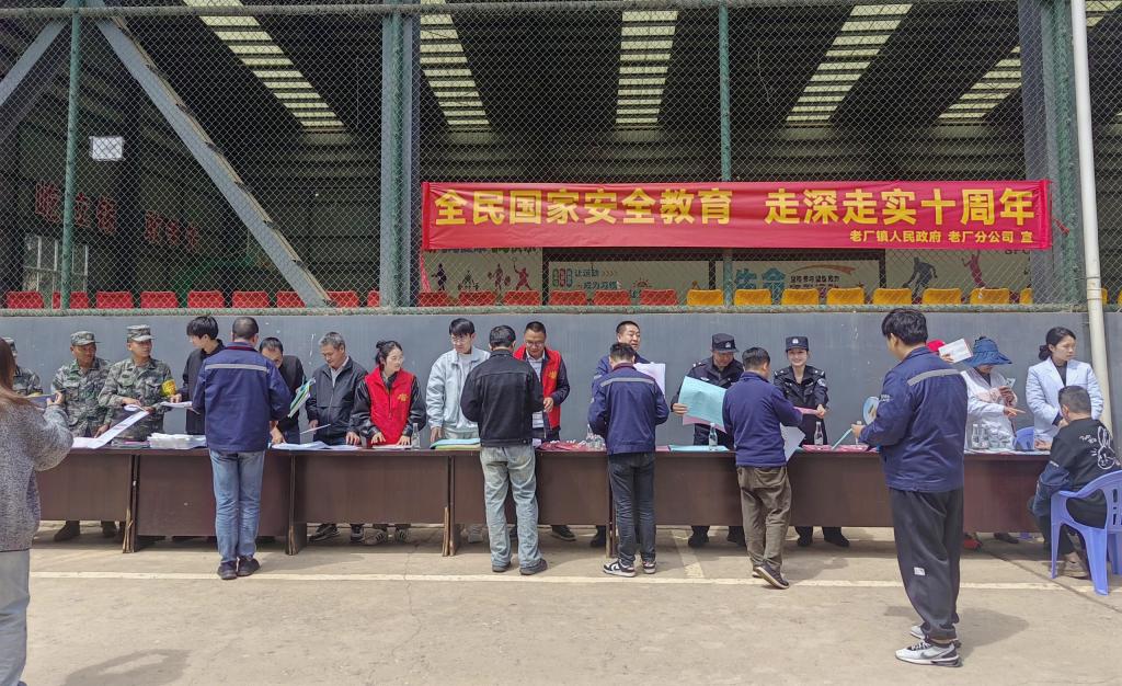 老廠分公司聯合老廠鎮政府、個舊市公安局老廠派出所、老廠衛生院開展普法宣傳活動,發放有關法律法規宣傳單、宣傳冊和宣傳品,吸引眾多職工群眾駐足領取和咨詢。(張濤)